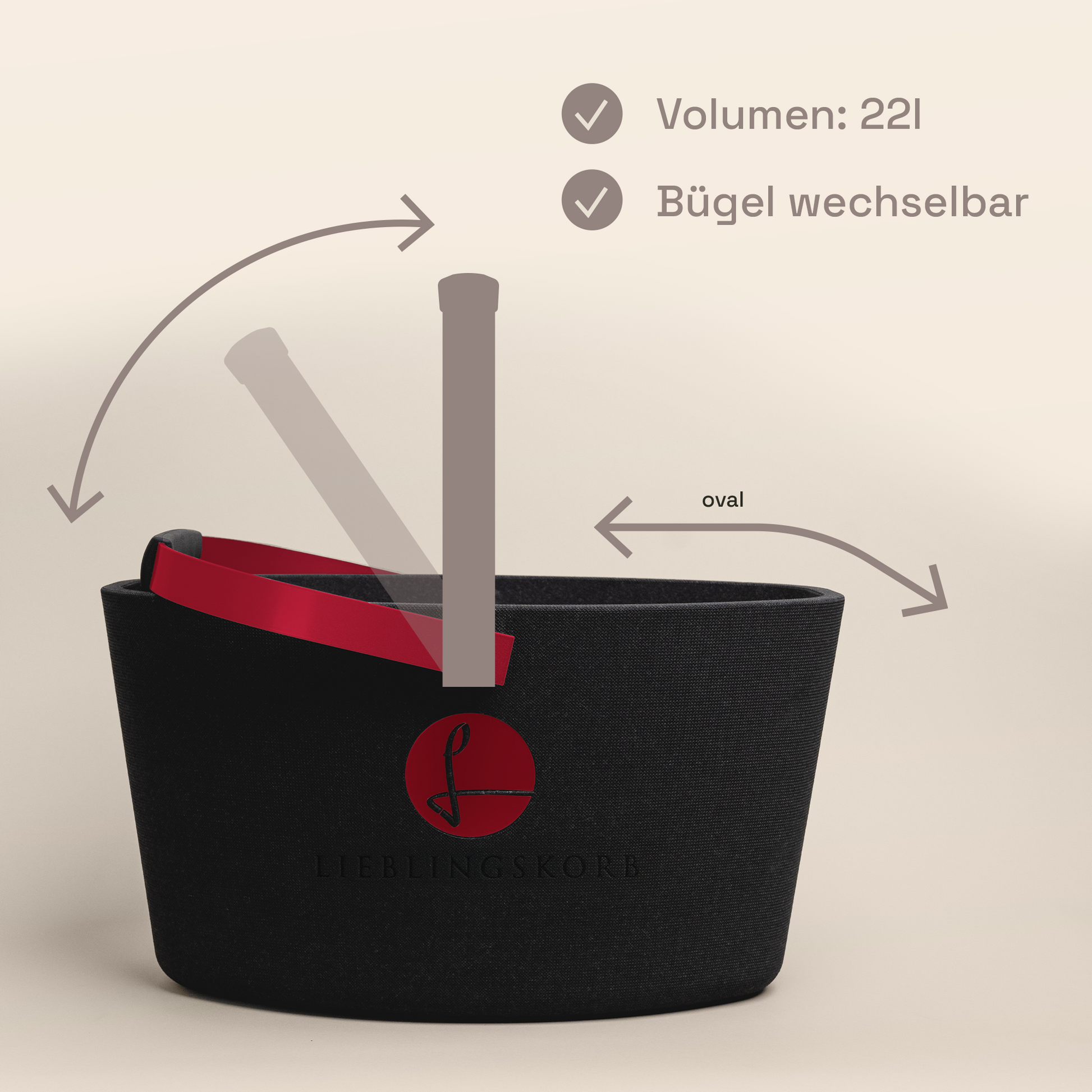 Und das Beste: Dank der wechselbaren Bügelsets in großer Farbauswahl passt sich der LIEBLINGSKORB an jedes Outfit an!