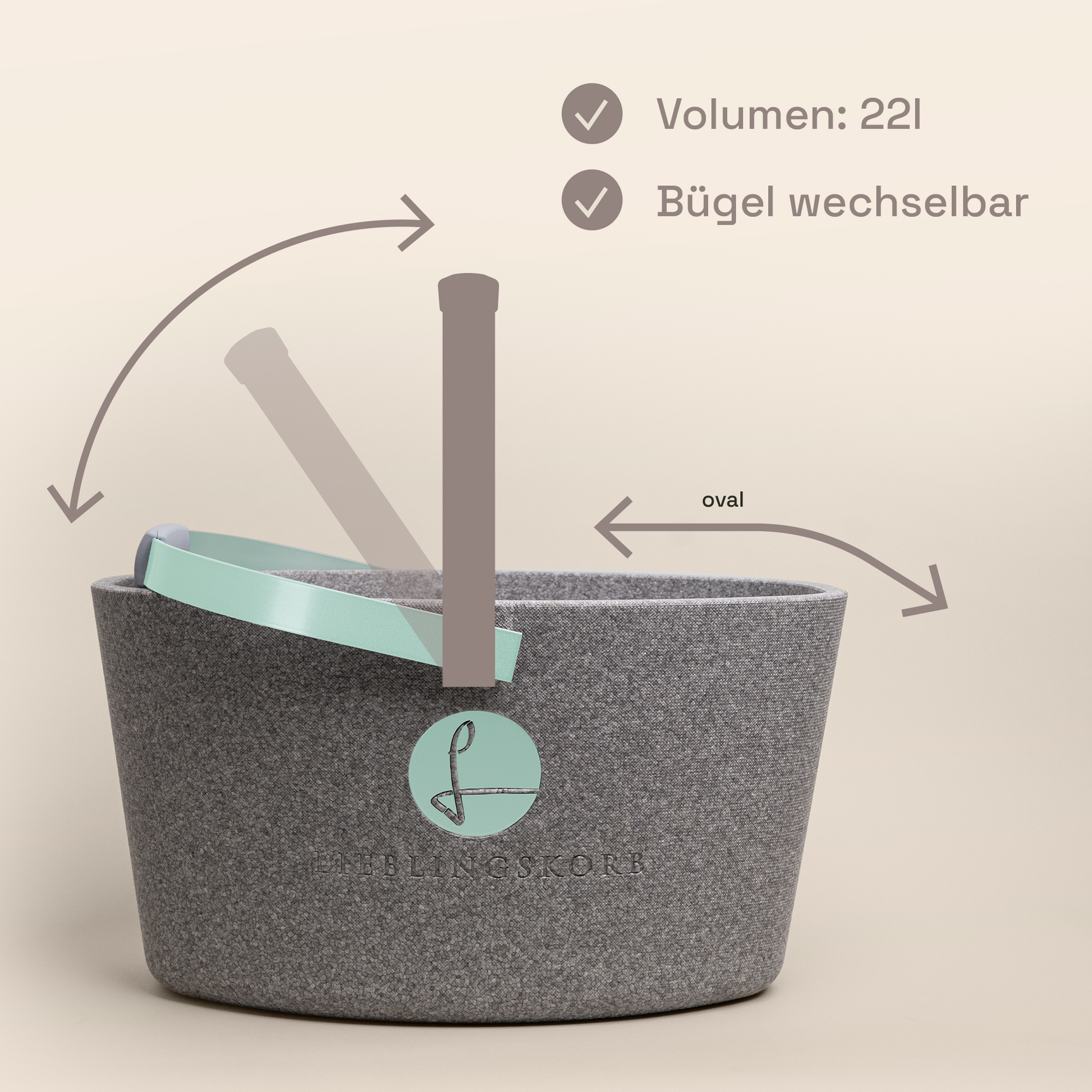 Und das Beste: Dank der wechselbaren Bügelsets in großer Farbauswahl passt sich der LIEBLINGSKORB an jedes Outfit an!