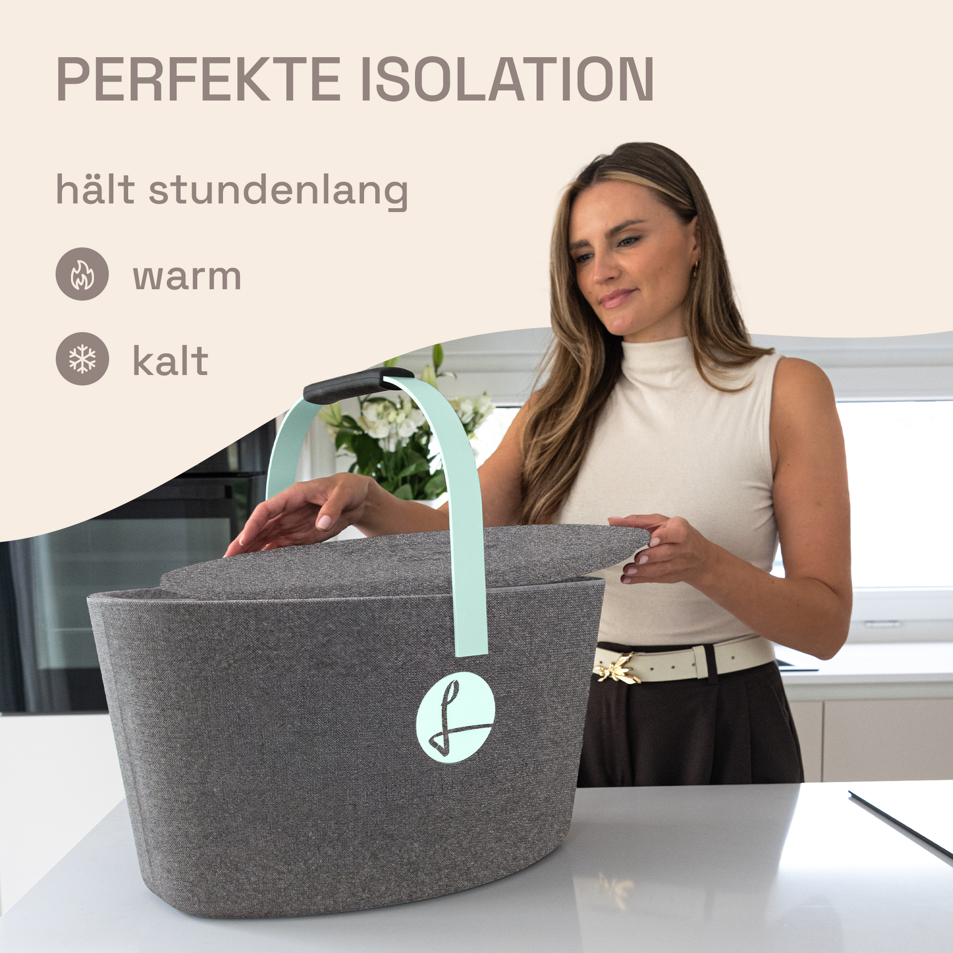 Der LIEBLINGSKORB Basic ist dank der ovalen Form ein echtes Platzwunder. Dieser stilvolle Einkaufskorb in silver grey ist gemacht für alles, was dein Alltag bereithält. Dank der kippsicheren, formstabilen Konstruktion transportierst du deine Lebensmittel sicher und entspannt – selbst bei voller Beladung. Das thermoisolierende Material sorgt dafür, dass frische Lebensmittel länger kühl bleiben.