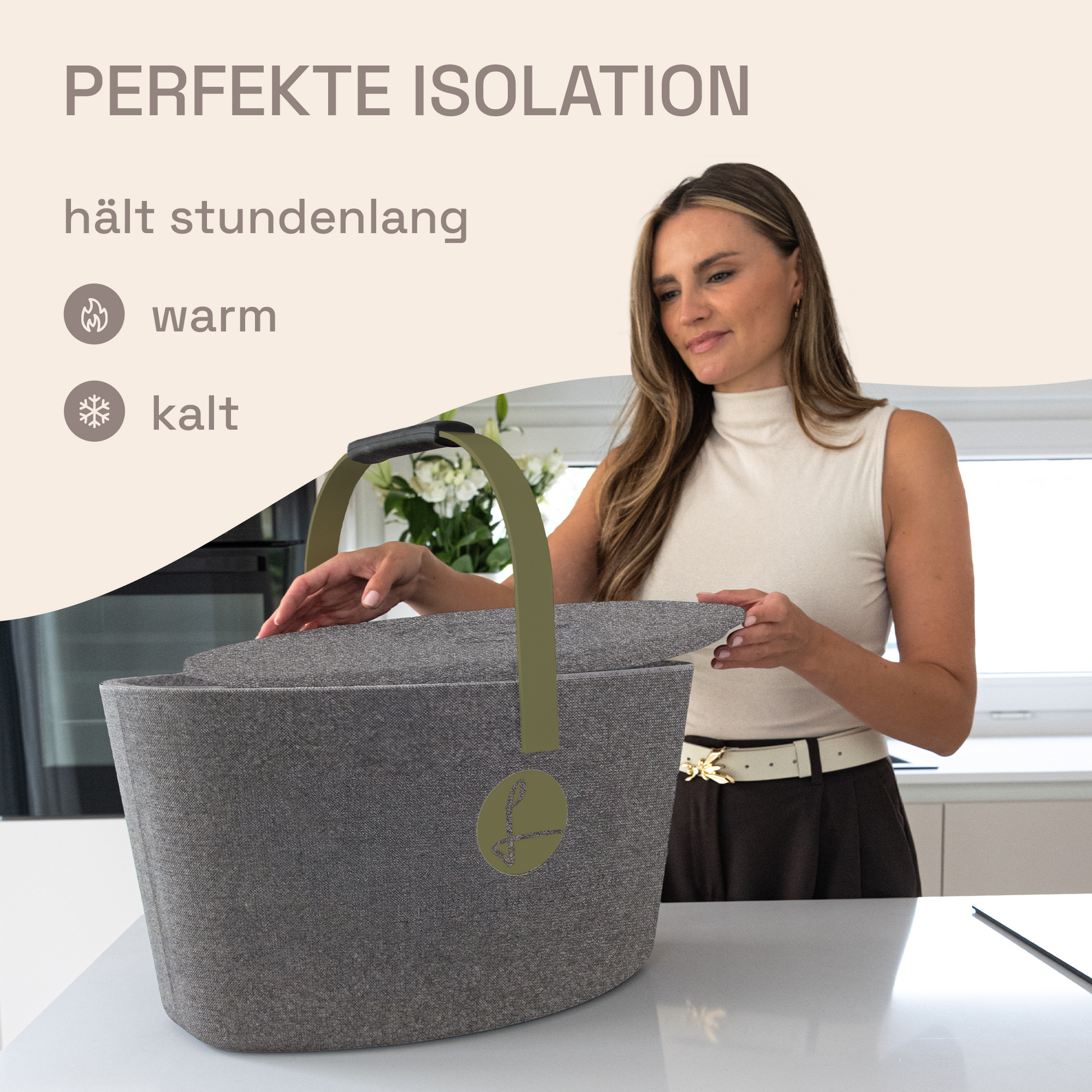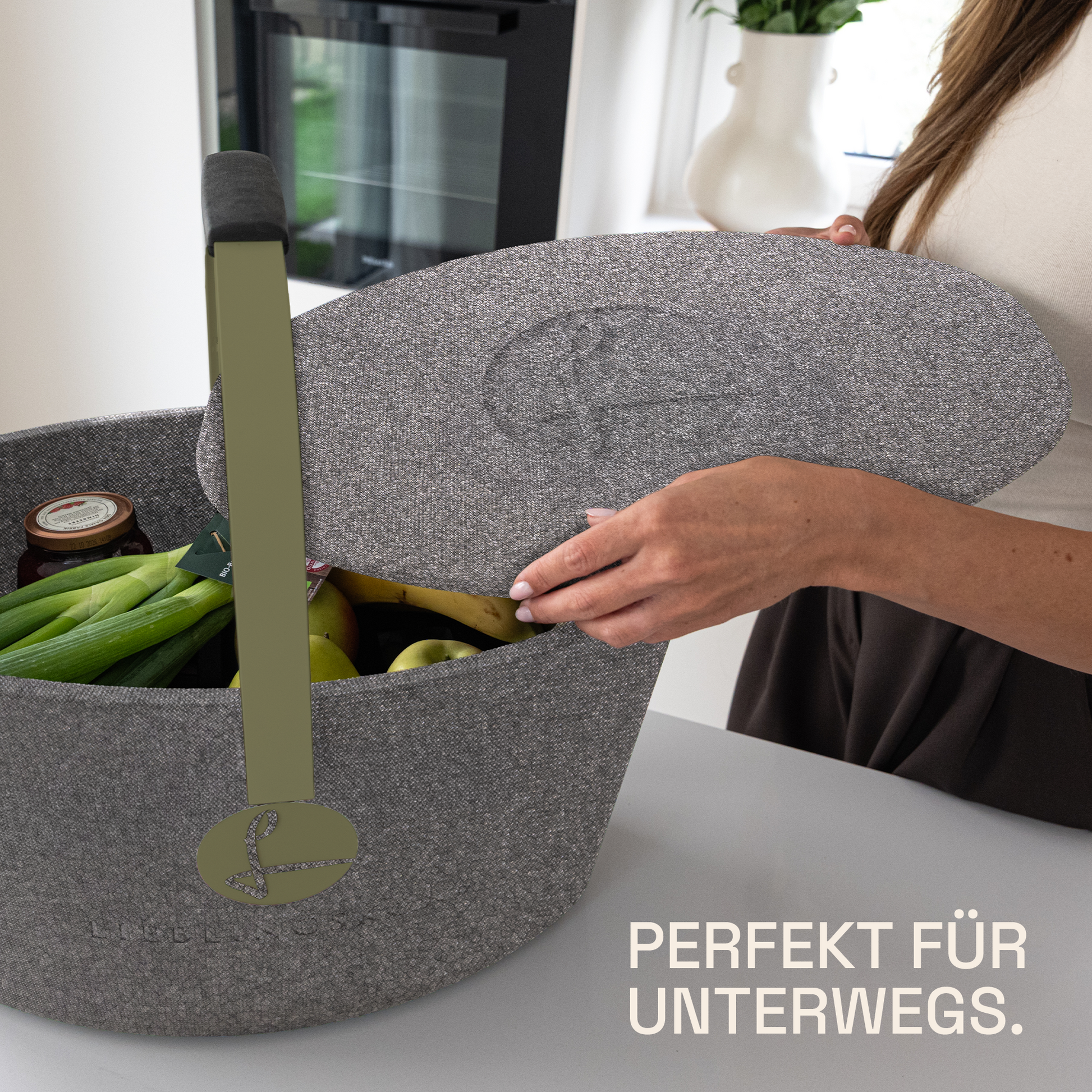 Der LIEBLINGSKORB Basic ist dank der ovalen Form ein echtes Platzwunder. Dieser stilvolle Einkaufskorb in silver grey ist gemacht für alles, was dein Alltag bereithält. Dank der kippsicheren, formstabilen Konstruktion transportierst du deine Lebensmittel sicher und entspannt – selbst bei voller Beladung. Das thermoisolierende Material sorgt dafür, dass frische Lebensmittel länger kühl bleiben.