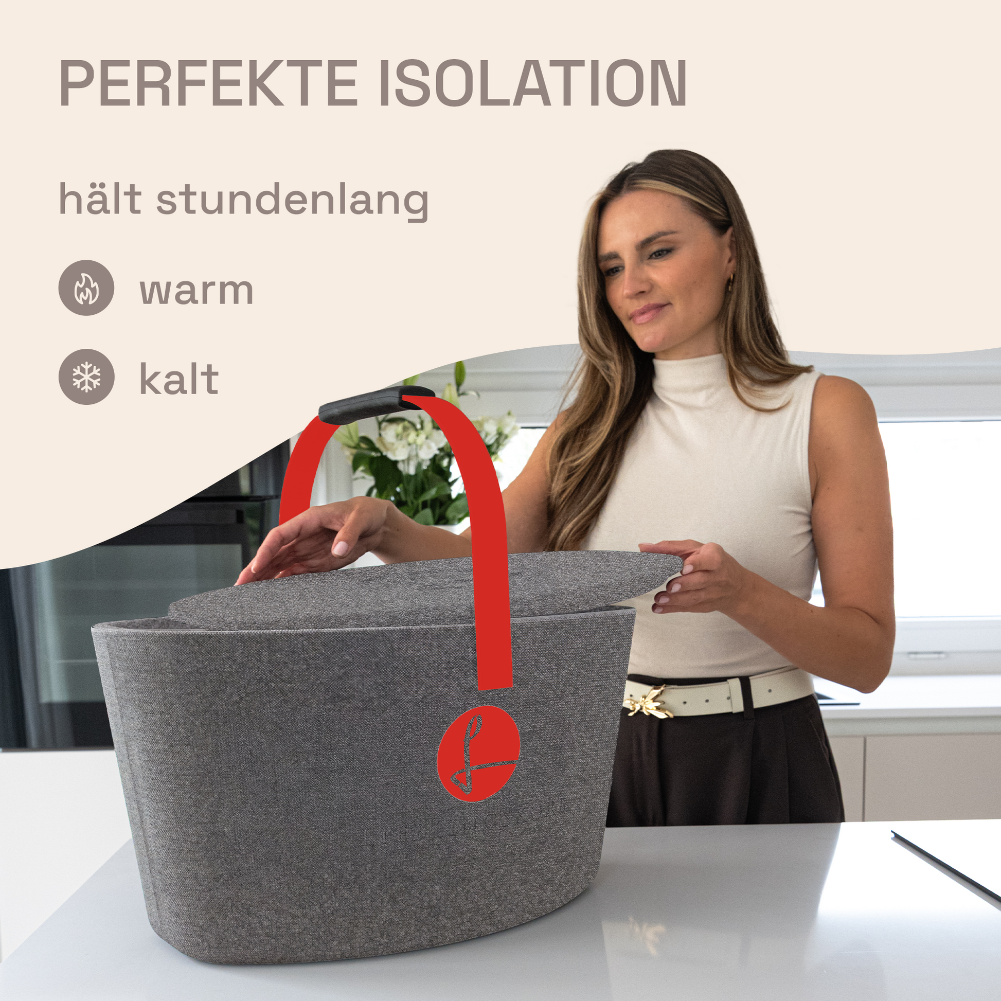 Der LIEBLINGSKORB Basic ist dank der ovalen Form ein echtes Platzwunder. Dieser stilvolle Einkaufskorb ist gemacht für alles, was dein Alltag bereithält. Dank der kippsicheren, formstabilen Konstruktion transportierst du deine Lebensmittel sicher und entspannt – selbst bei voller Beladung. Das thermoisolierende Material sorgt dafür, dass frische Lebensmittel länger kühl bleiben.