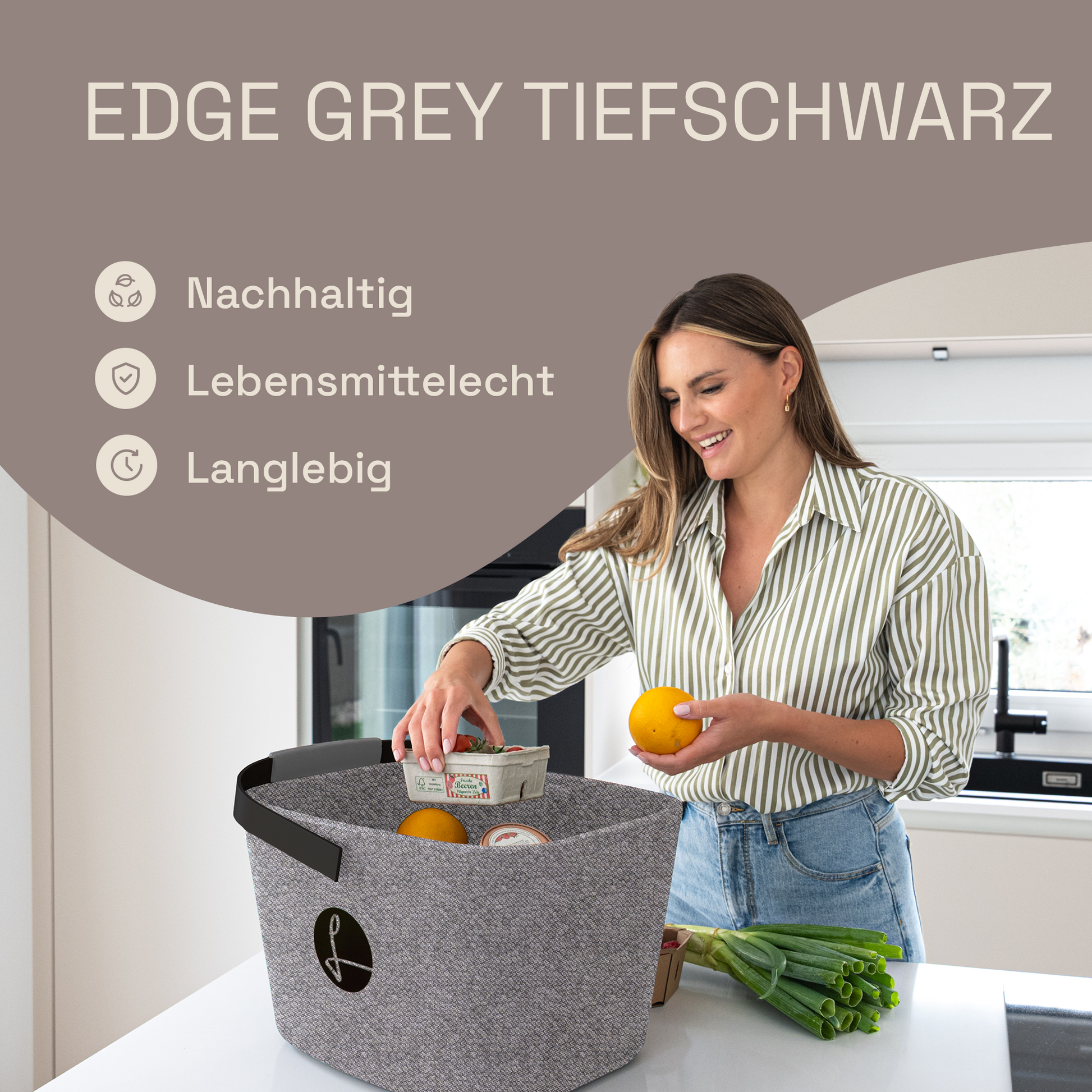 Entdecke die Grey-Edge-Kollektion und erlebe, wie praktisch ein durchdachter Einkaufskorb sein kann, langlebig, pflegeleicht, lebensmittelecht und perfekt für alle, die klare Struktur lieben. Ideal für Alltag, Haushalt, Familien und alle, die Wert auf Qualität Made in Germany legen.